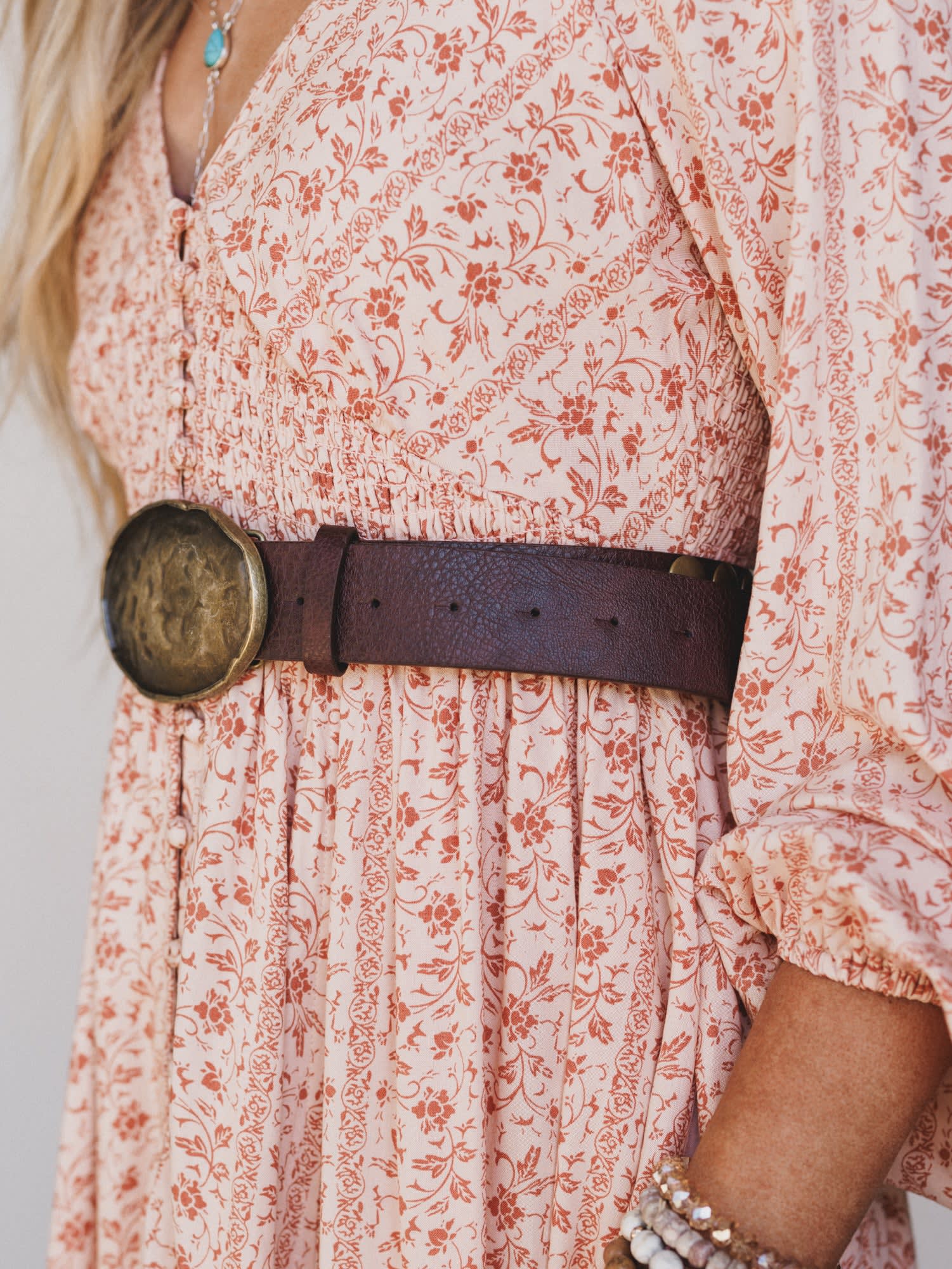 - Statement oval buckle with a hammered finish for vintage western vibes