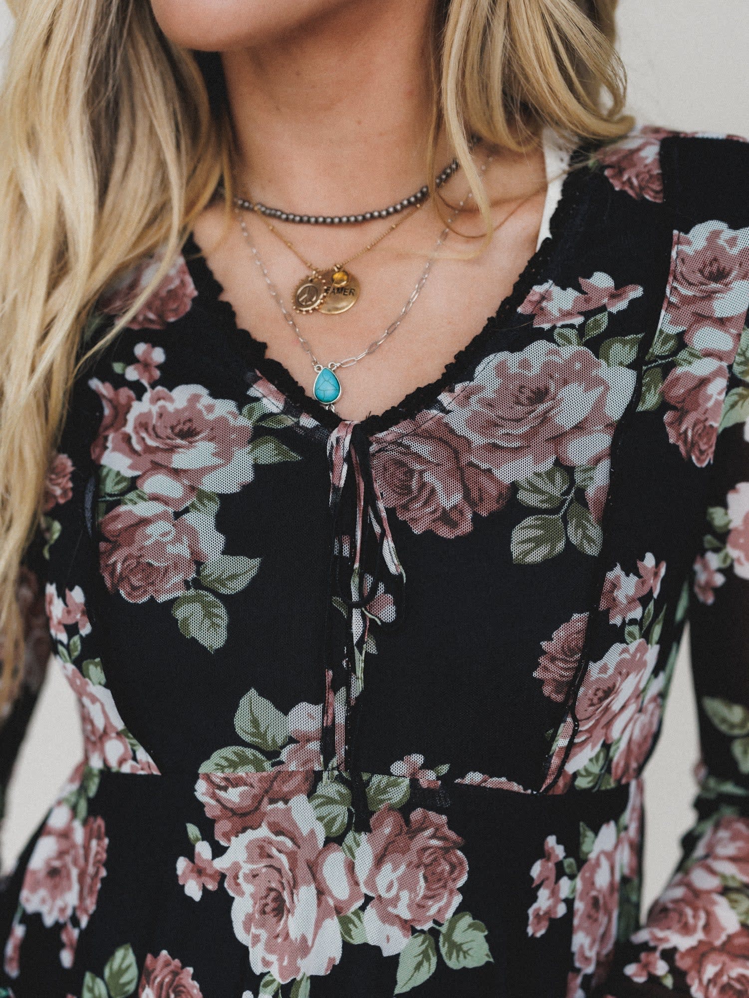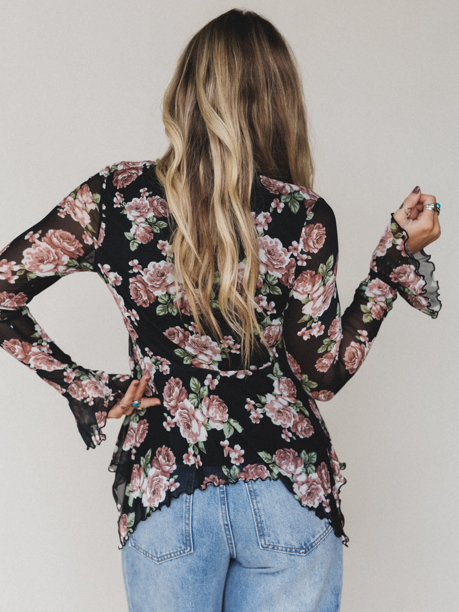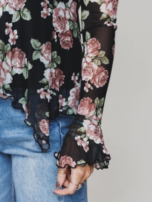 • Sheer mesh fabric with vintage rose print for that dreamy, ethereal vibe