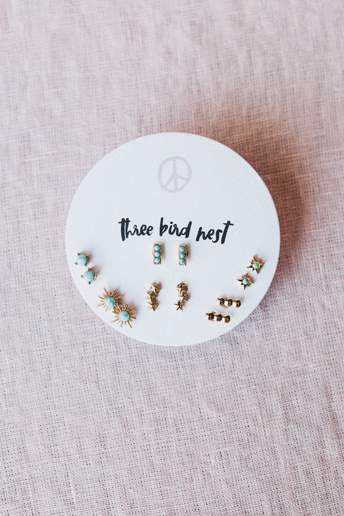 This set of small stud earrings is great for mixing and matching to create a unique look.