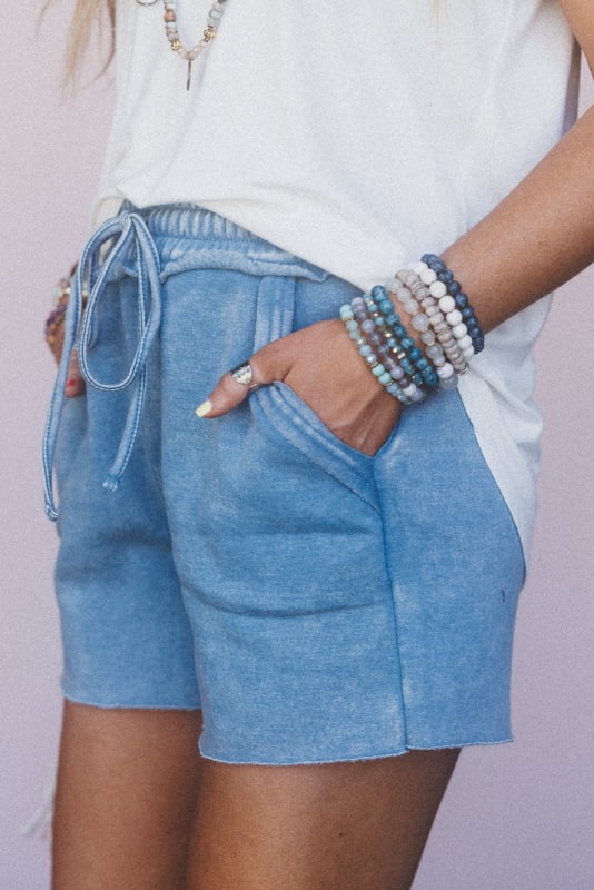 These mineral wash shorts pair effortlessly with graphic tops and sneakers for a casual look.