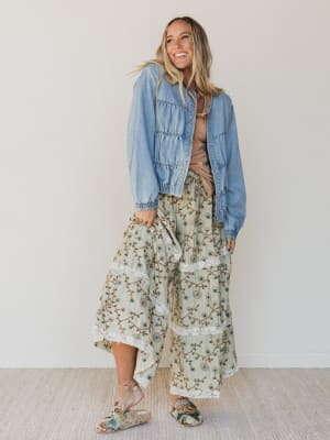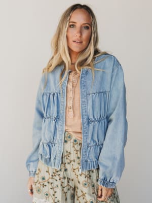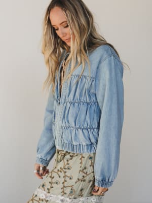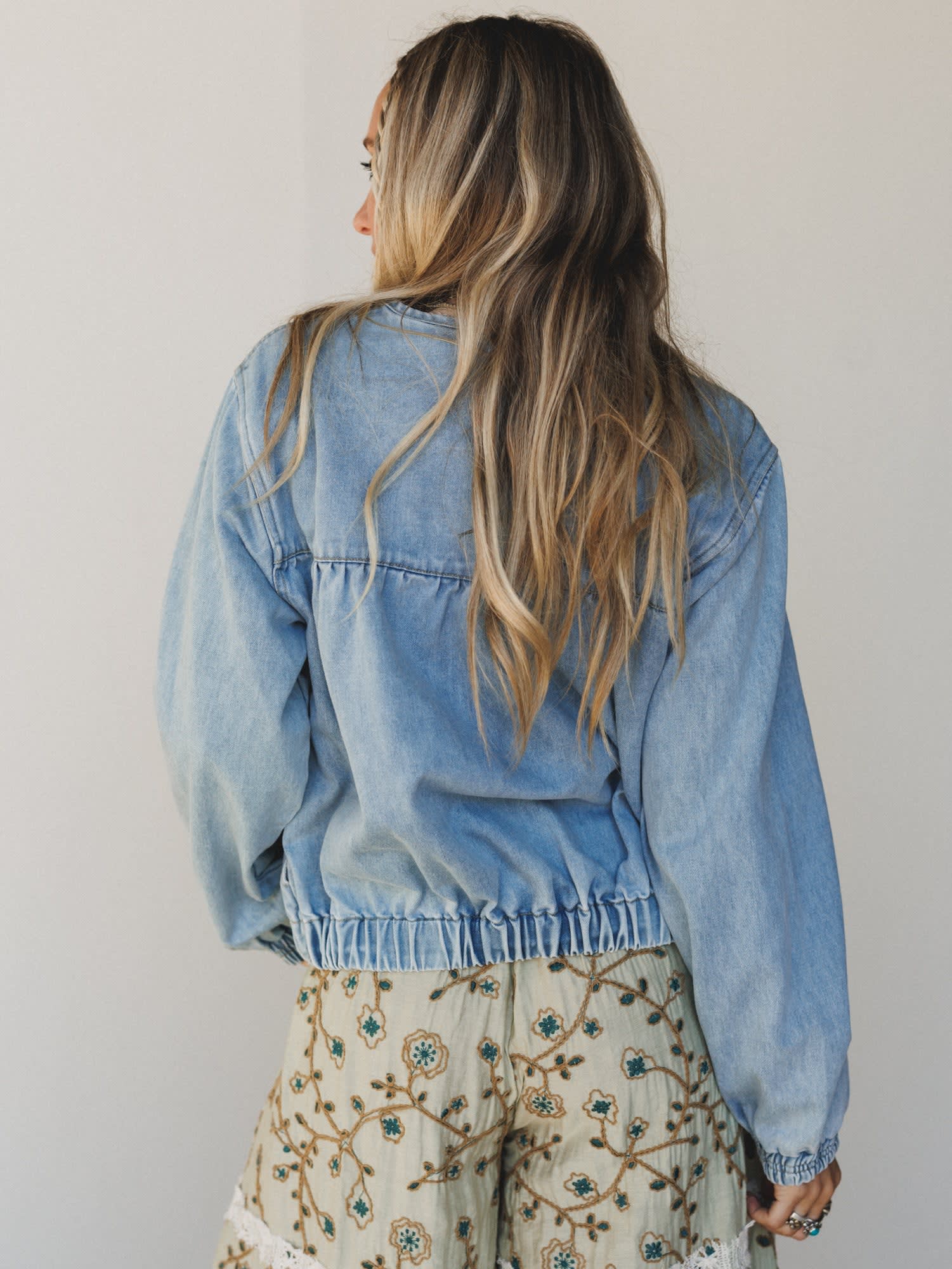 Meet your new layering love—the Willow Court Jacket. With its soft gathered details and laid-back denim wash, this piece blends casual charm with a touch of romantic whimsy.