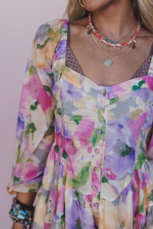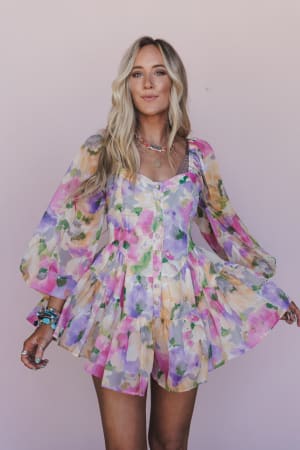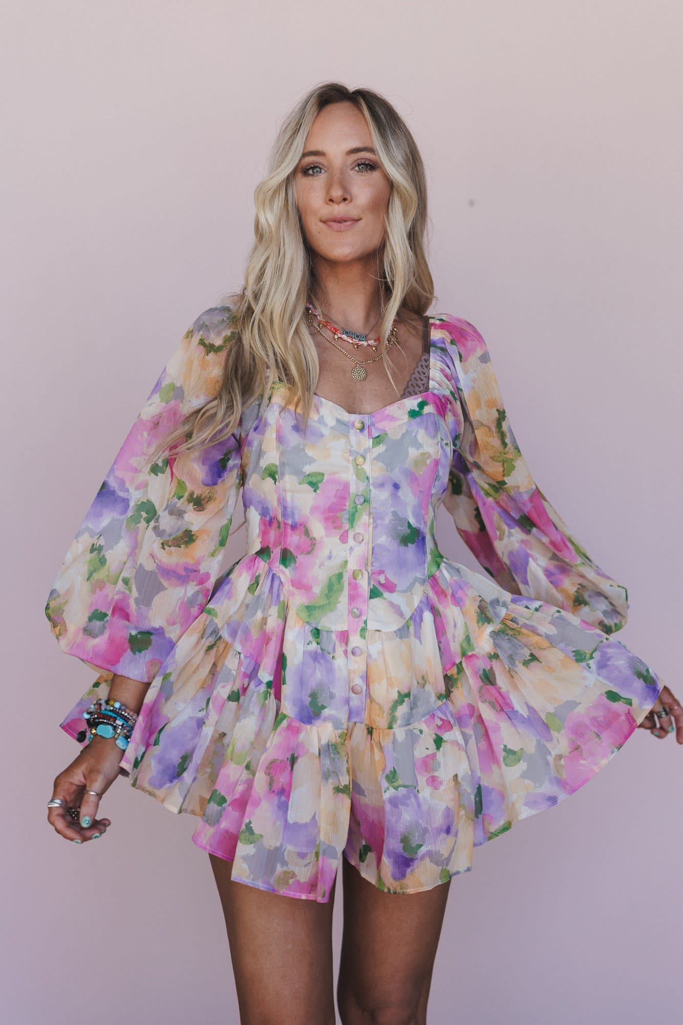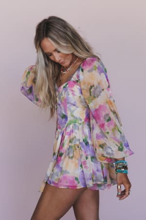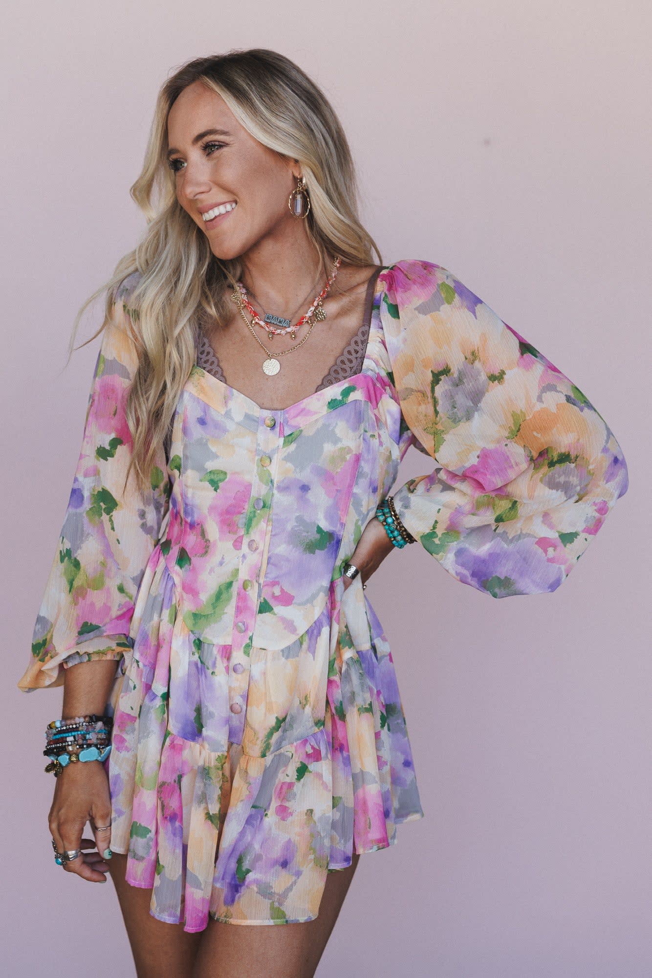 Wear this gorgeous romper with tall cowboy boots and a cropped denim vest for major boho vibes.