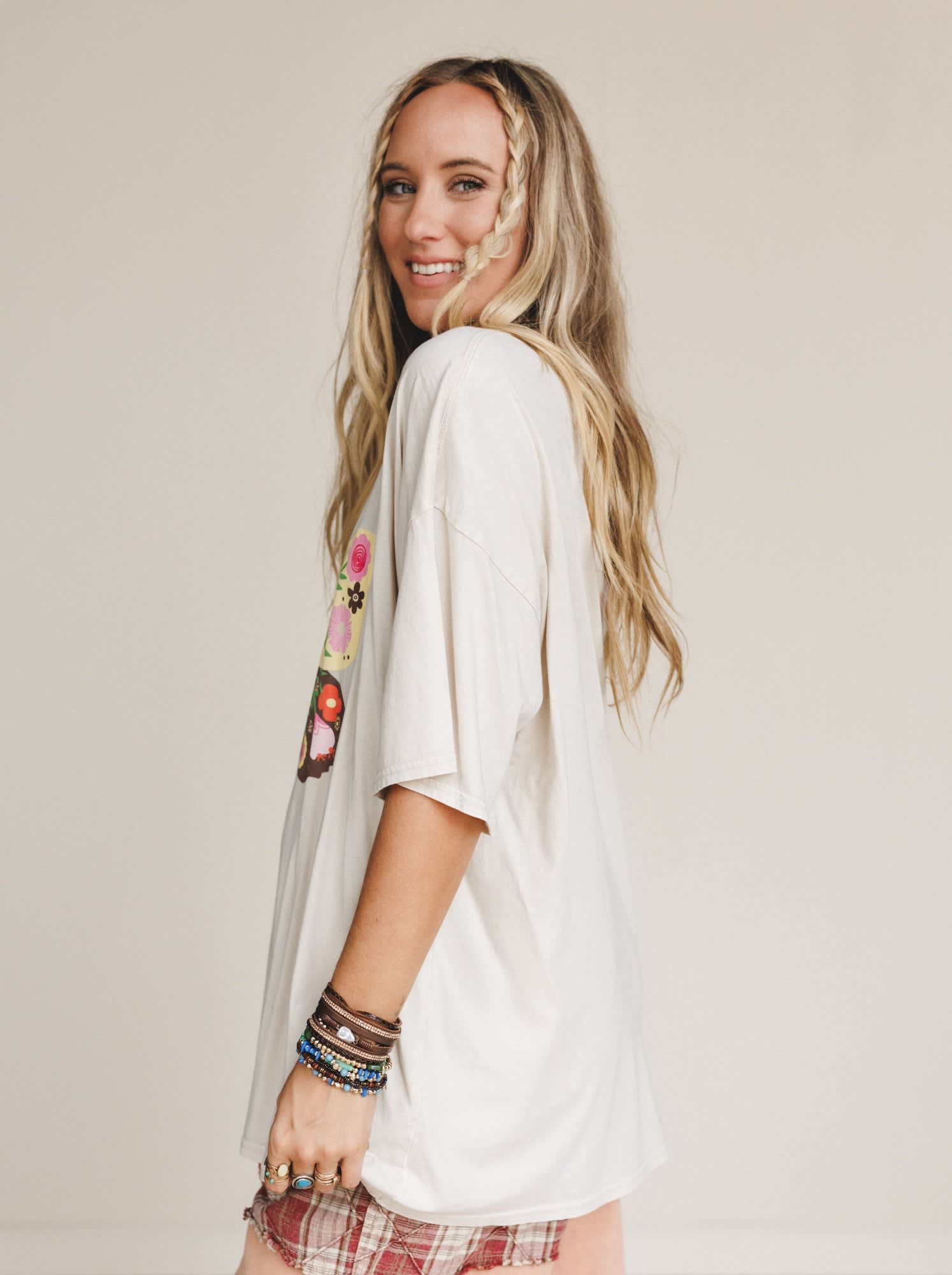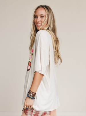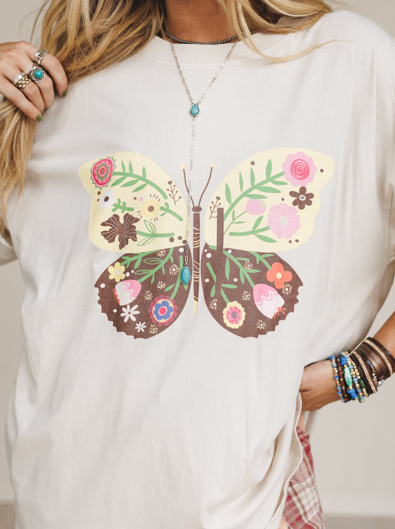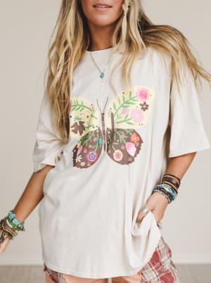 Let your style take flight in the Winged Bloom Top. This tee is a perfect blend of playful charm and laid-back comfort.