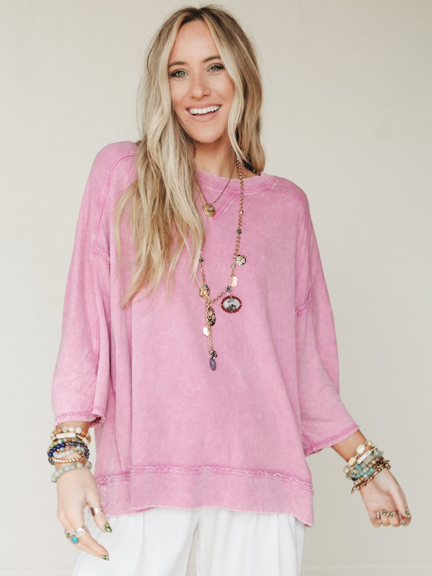 Effortlessly relaxed and perfectly lived-in, the Winsome Everyday Tee is the kind of top you’ll reach for again and again. With its soft washed finish, roomy silhouette, and laid-back vibe, it’s an easy essential for casual days and comfortable layering.