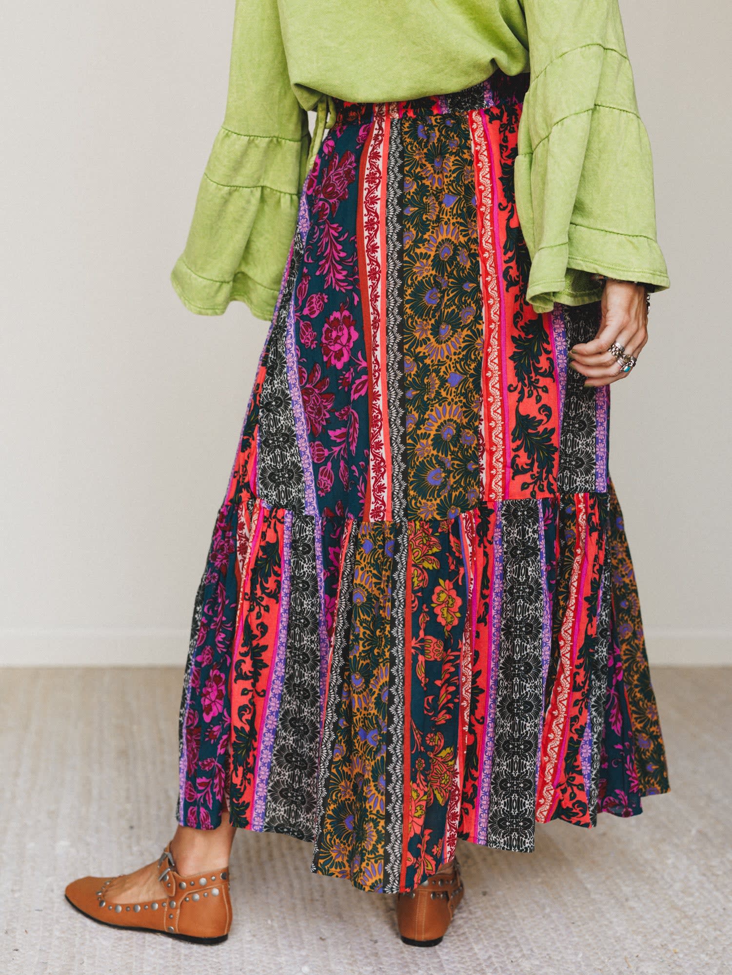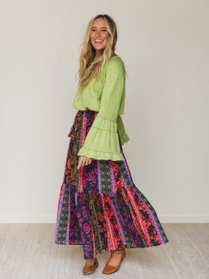 This skirt is what happens when your boho daydreams come true. The Wishwoven Maxi Skirt is all about flow, flair, and feeling your freest self—with every step becoming a swirl of bold color and texture.