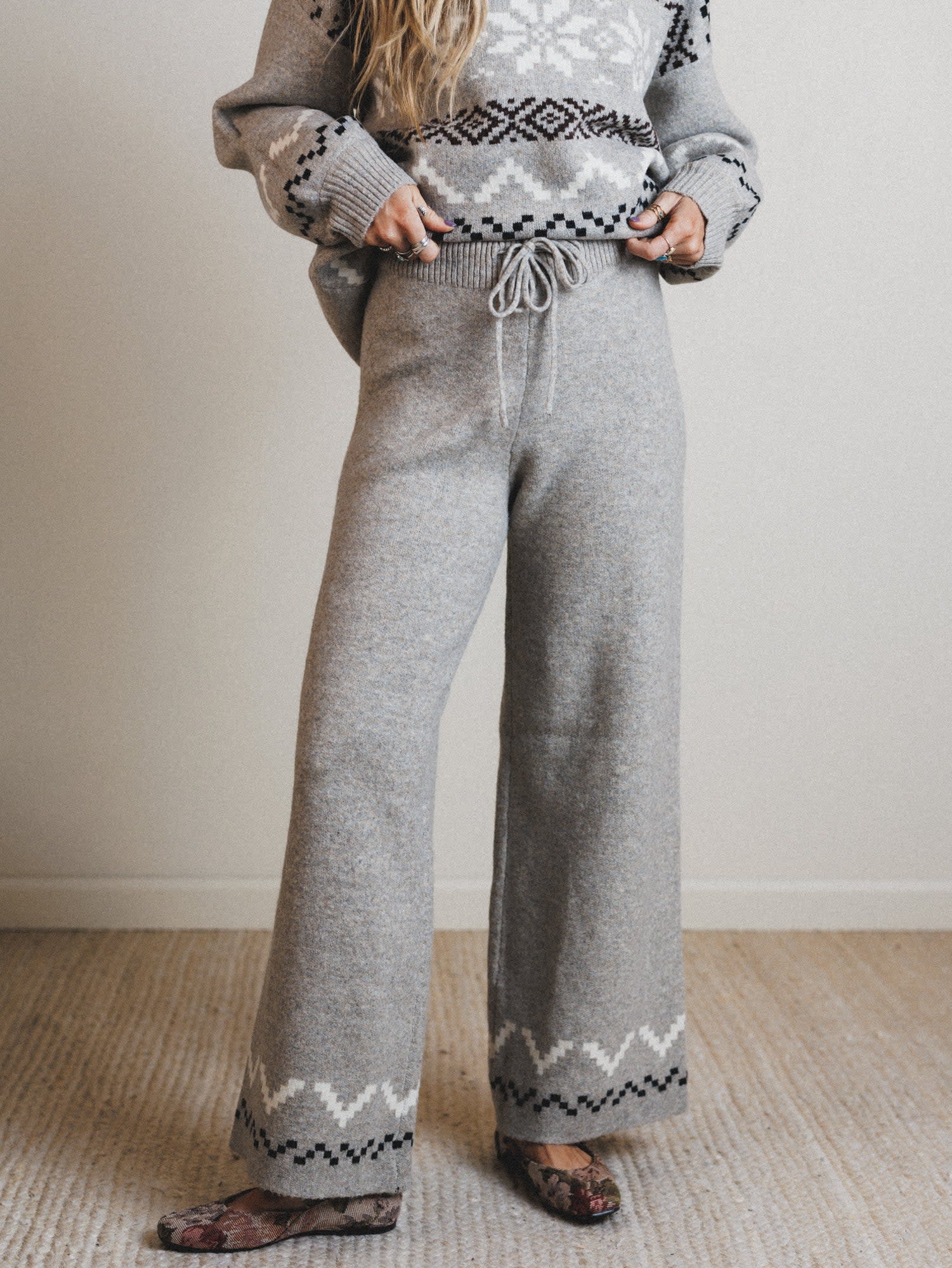 - Wonderland Wishes Pant: These ultra-soft knit bottoms feature a wide-leg silhouette and matching pattern details for that dreamy, pulled-together feel.