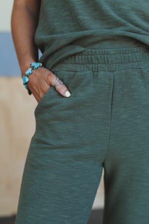 This matching top and bottom set can be easily dressed up with booties and layered necklaces and bracelets.Β