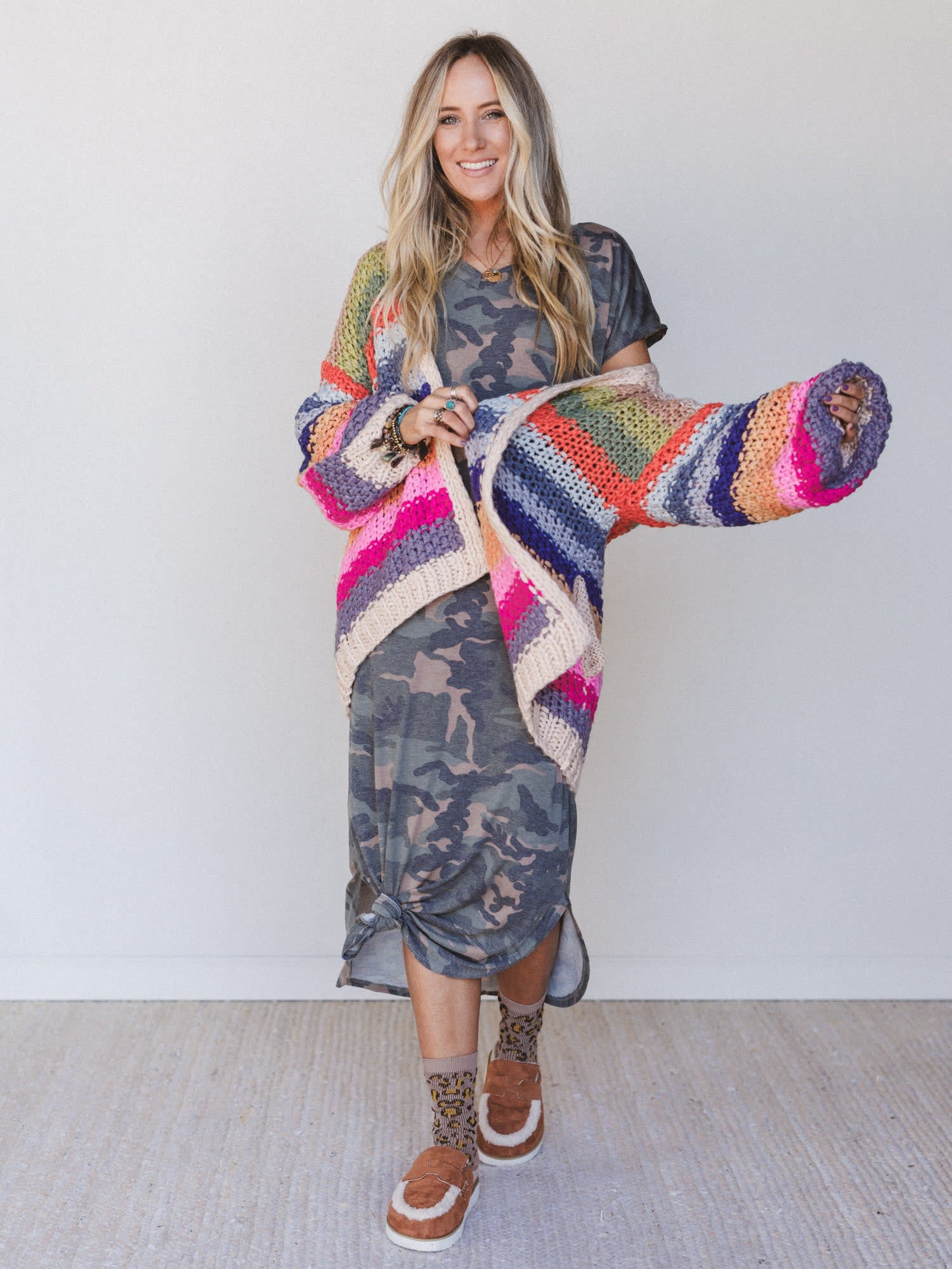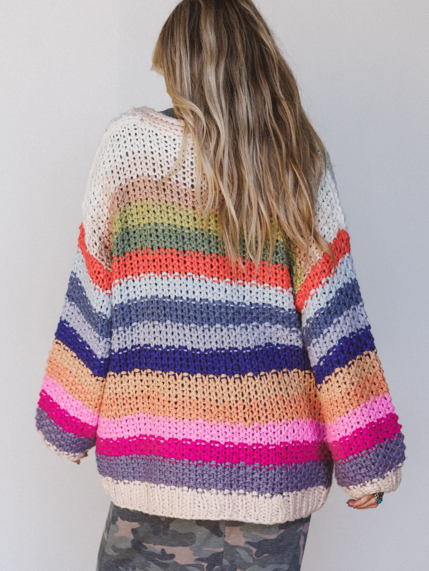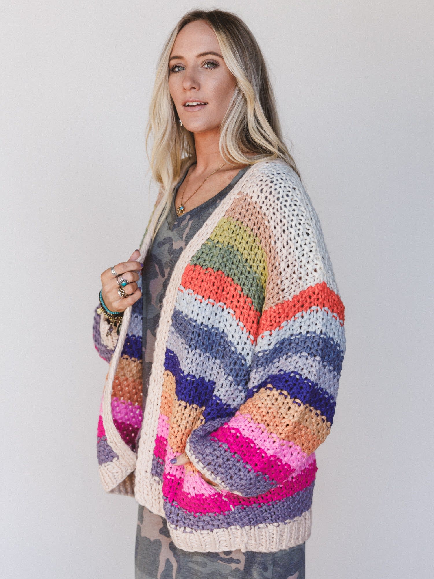 - Wrapped Up in Color Knit Cardigan brings the vibes with chunky crochet texture and a vibrant palette that brightens any day.