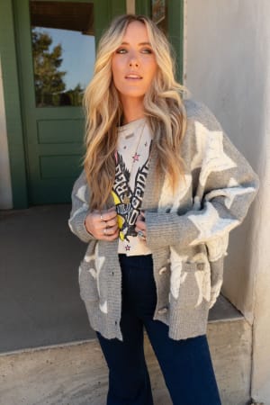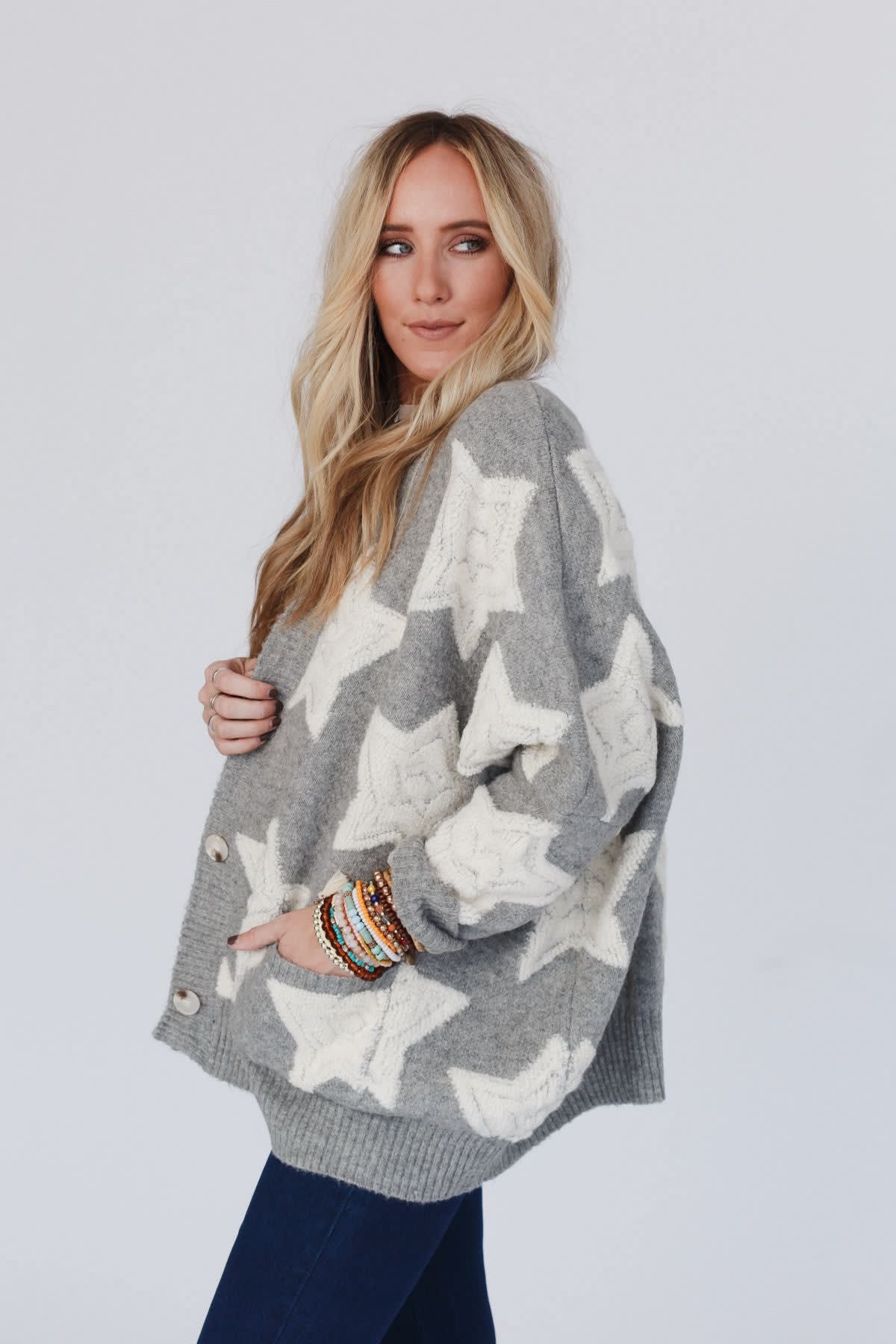 So fun and unique, the Wrapped In Stars Oversized Cardigan is quickly going to become your favorite sweater!