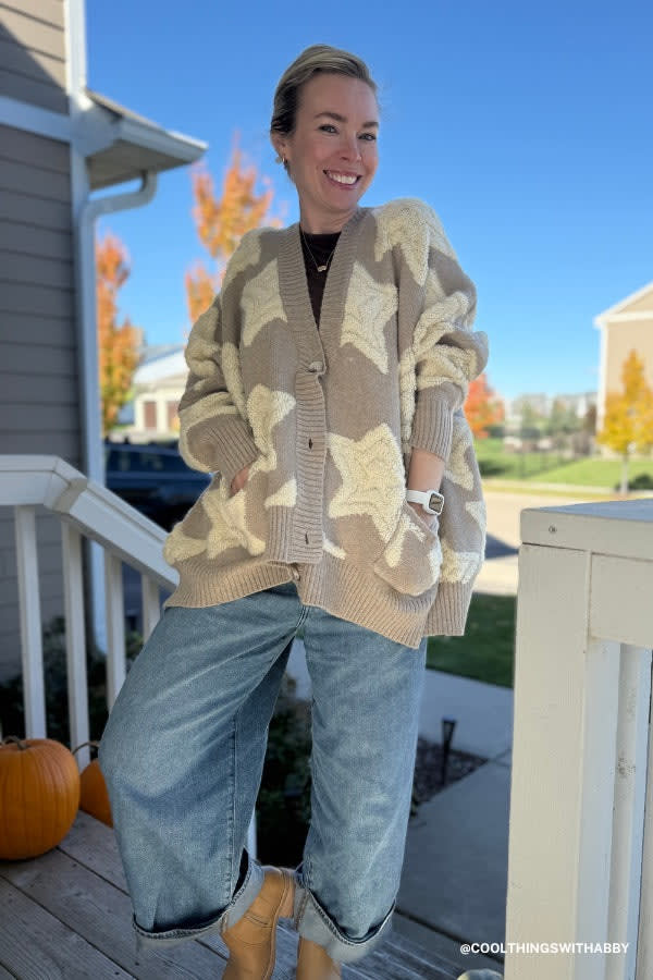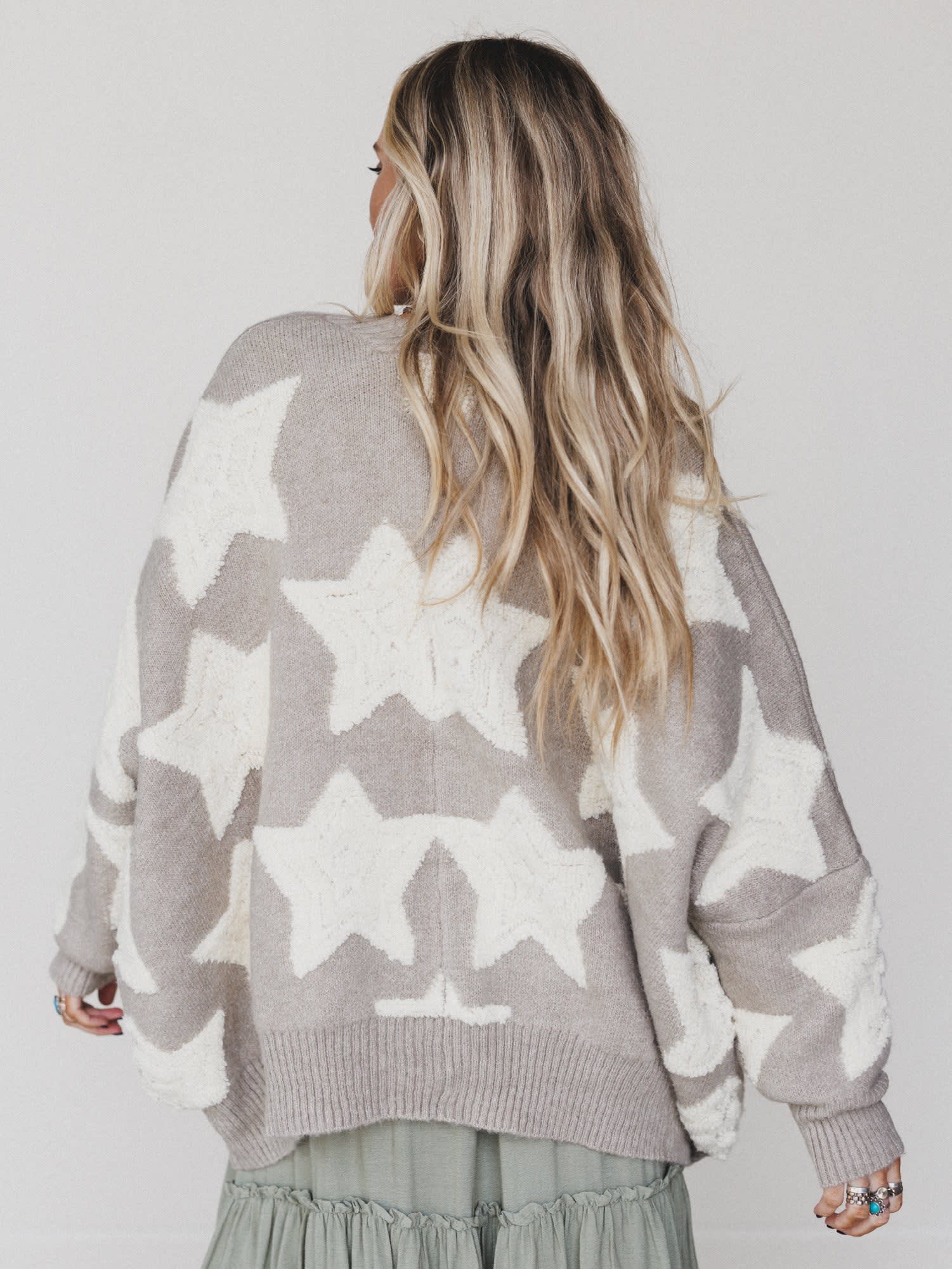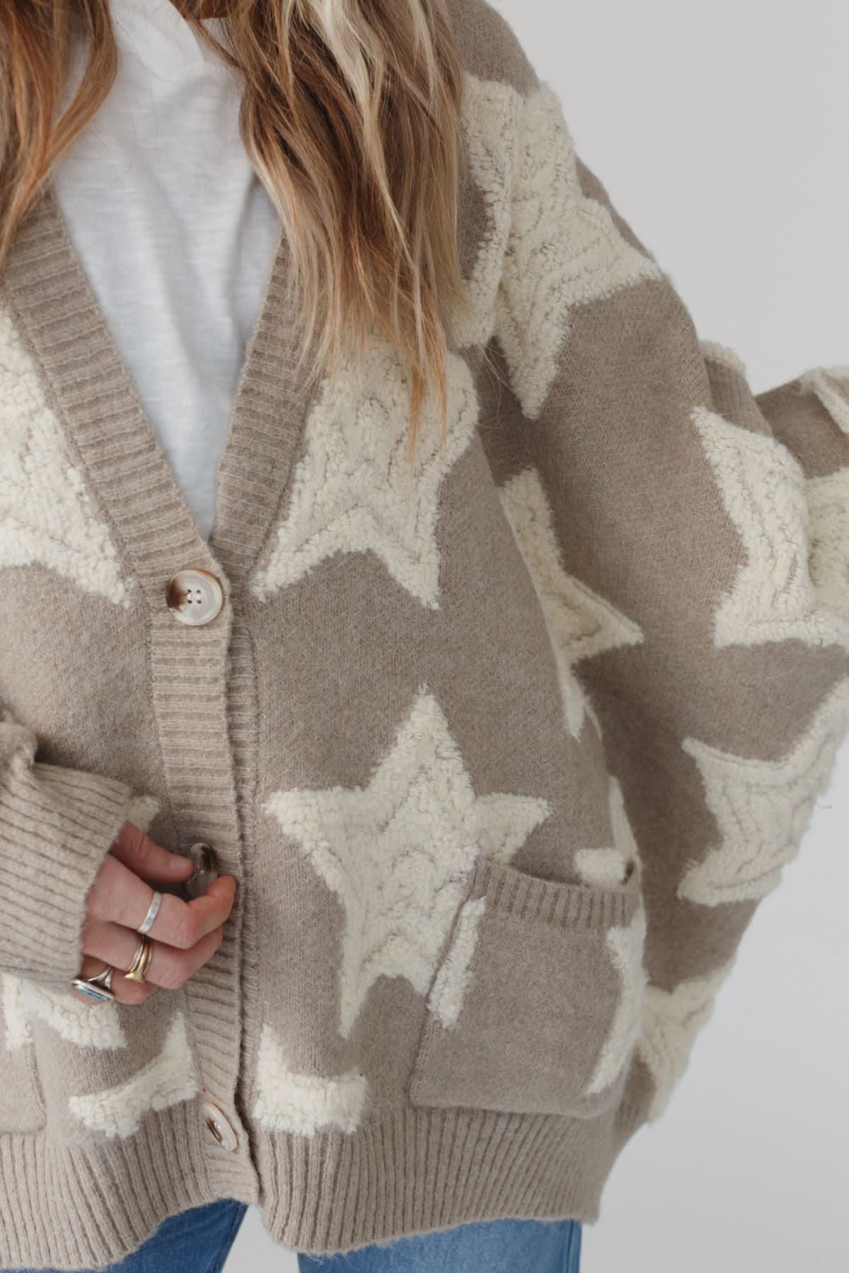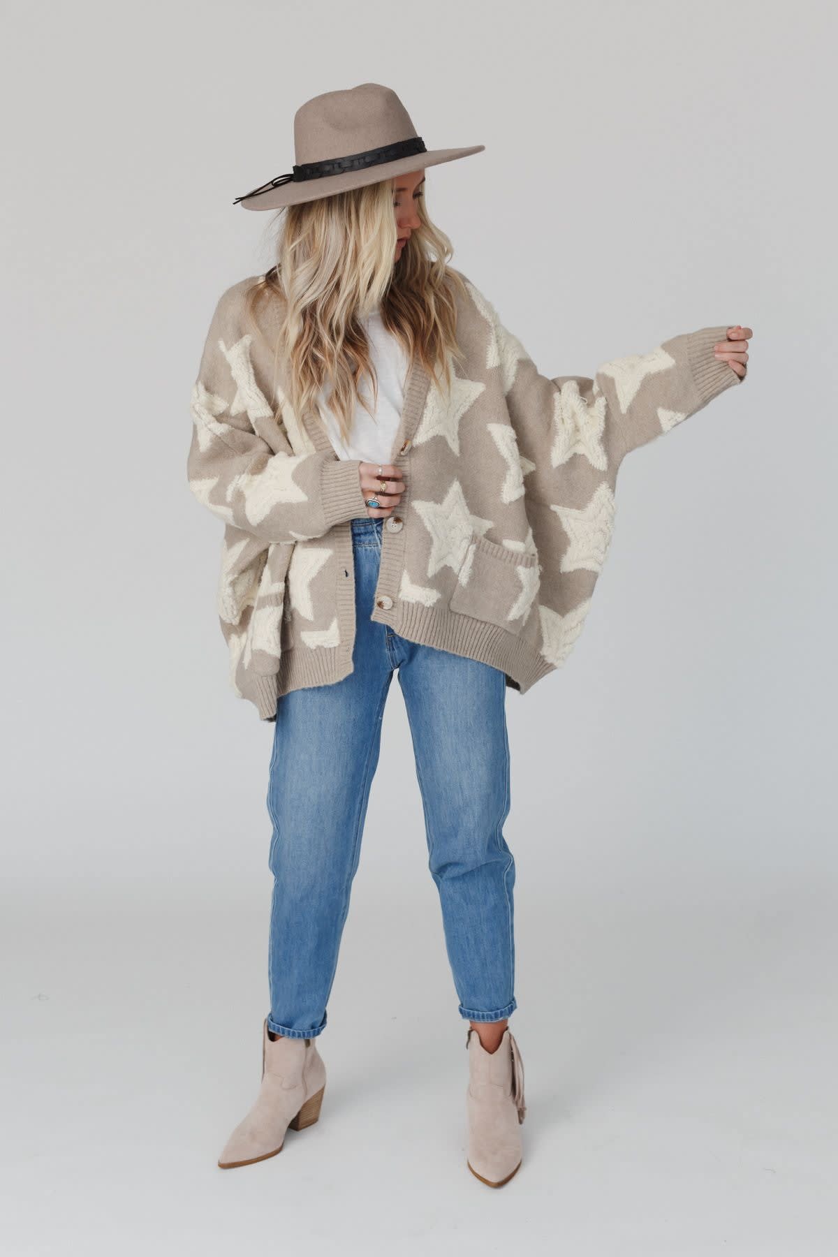 So fun and unique, the Wrapped In Stars Oversized Cardigan is quickly going to become your favorite sweater!