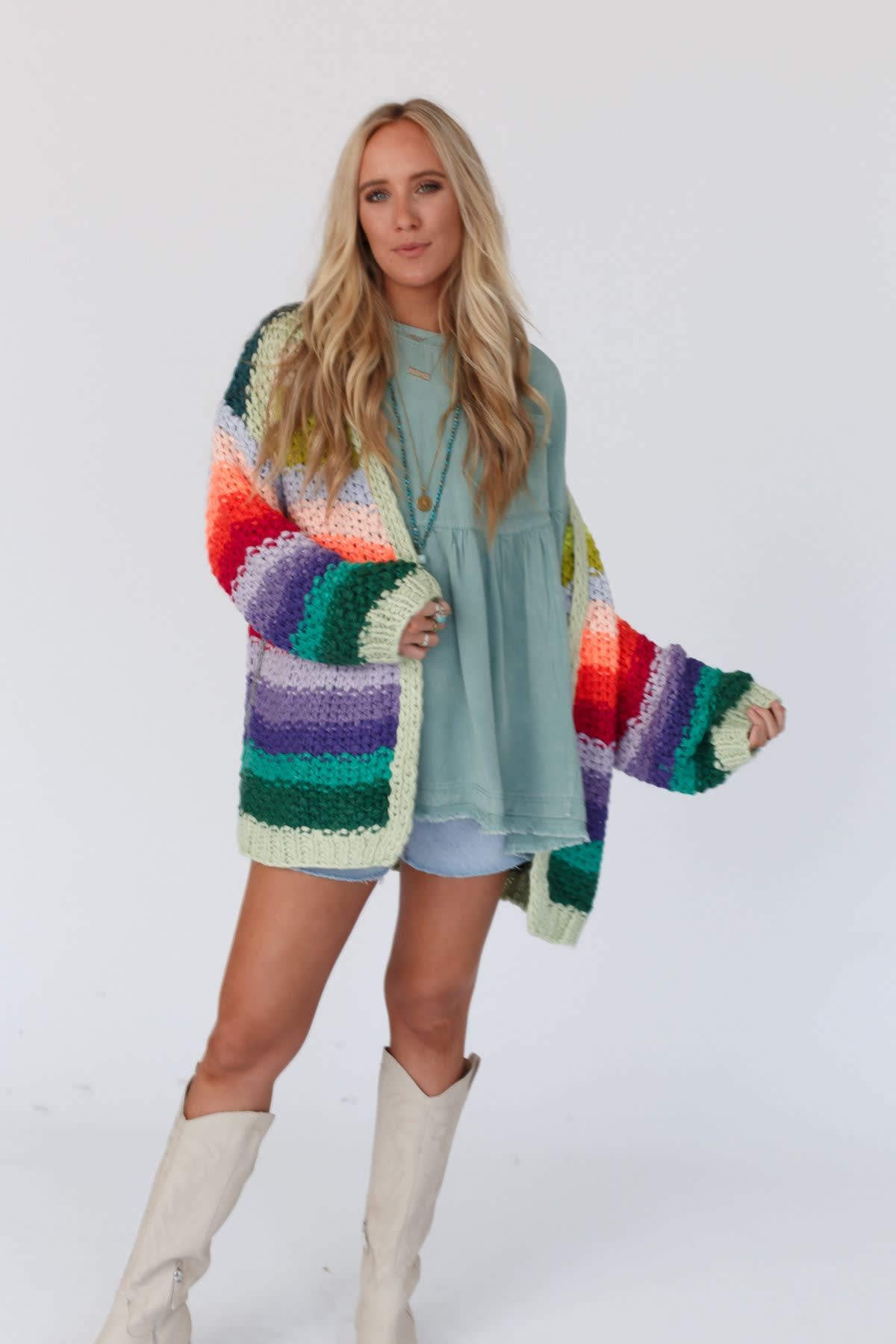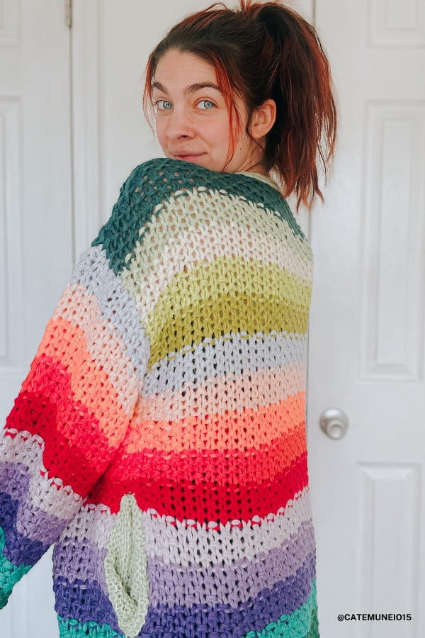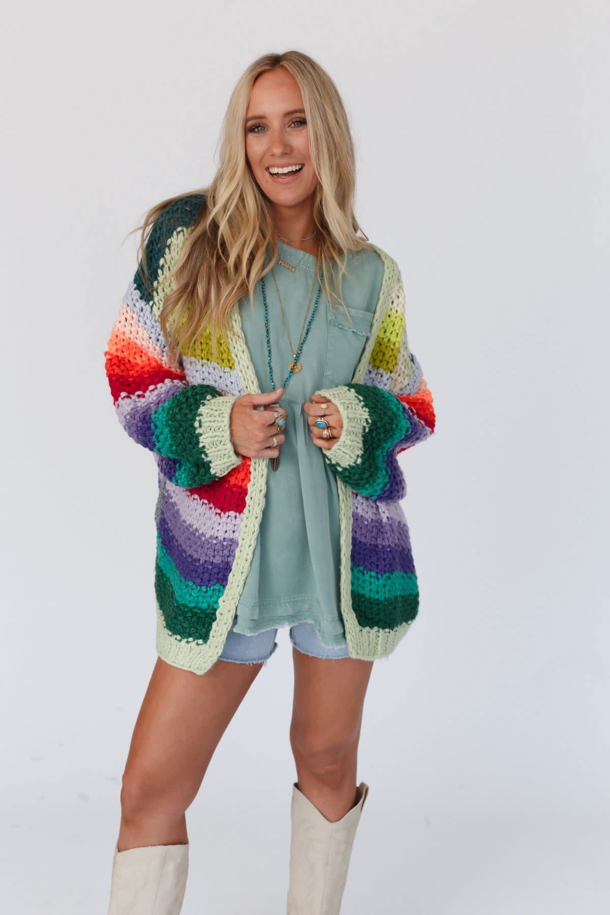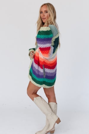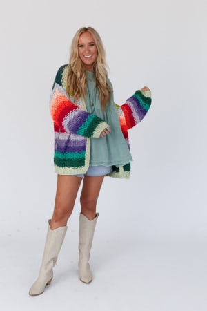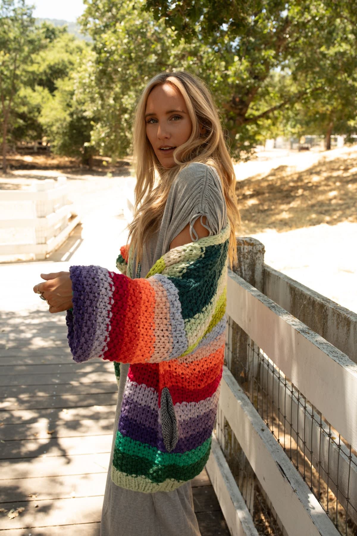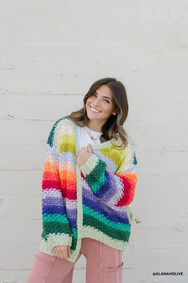 Add a fun and cozy statement to any of your outfits with this bold cardigan!