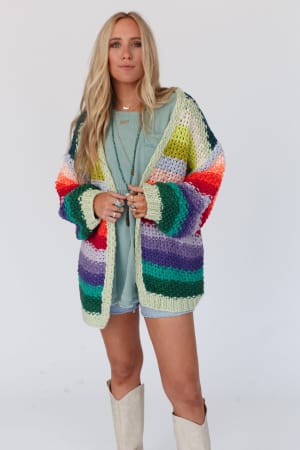 Add a fun and cozy statement to any of your outfits with this bold cardigan!