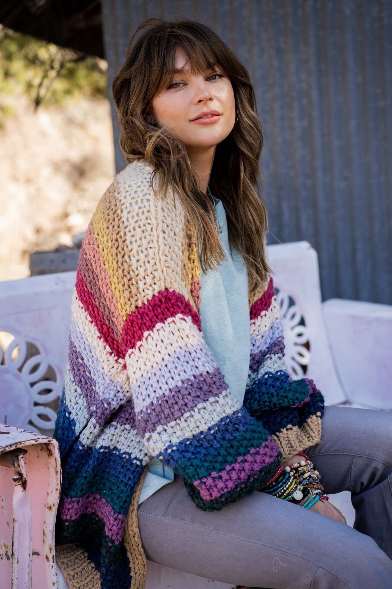 Add a fun and cozy statement to any of your outfits with this bold cardigan!