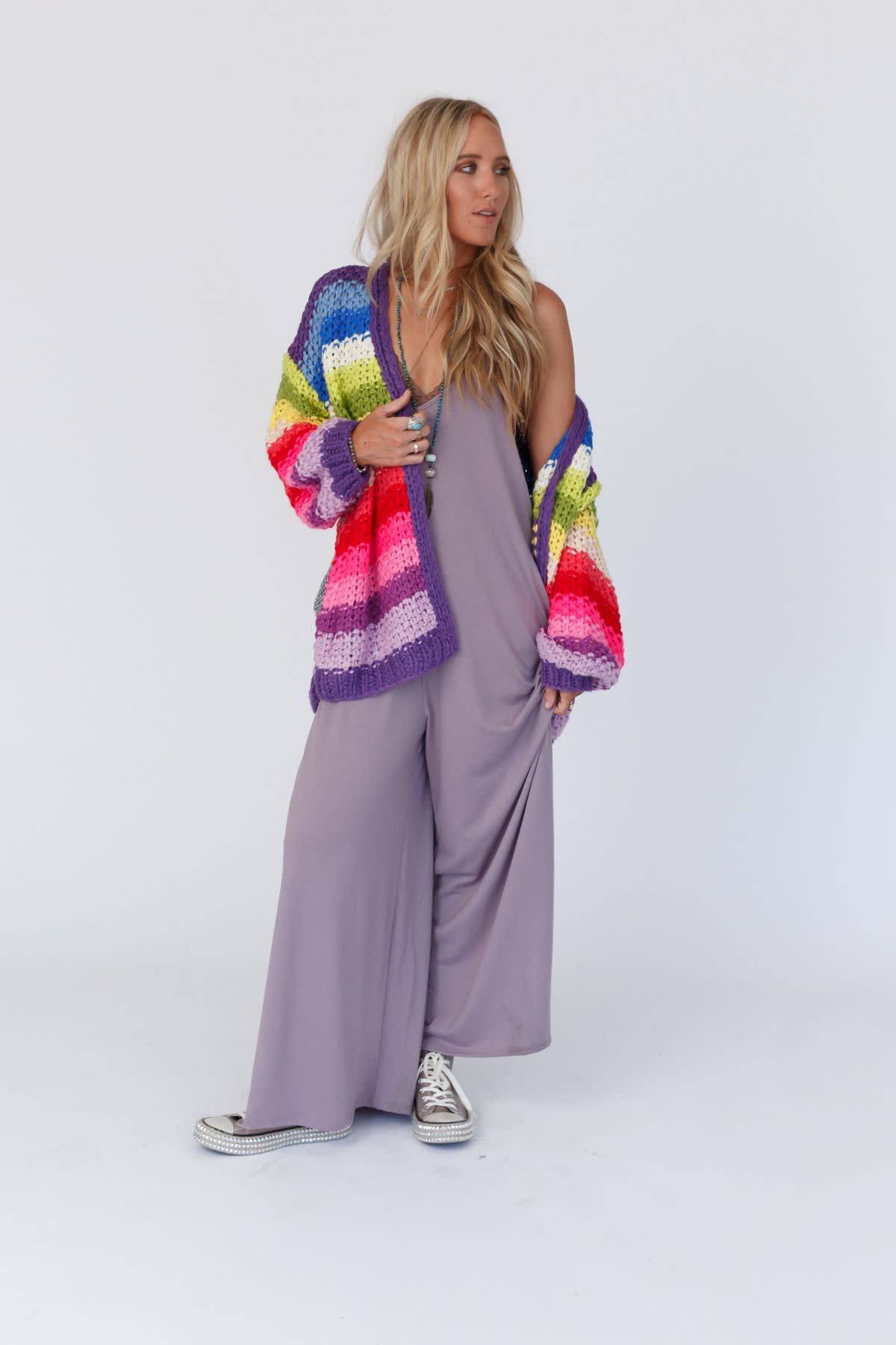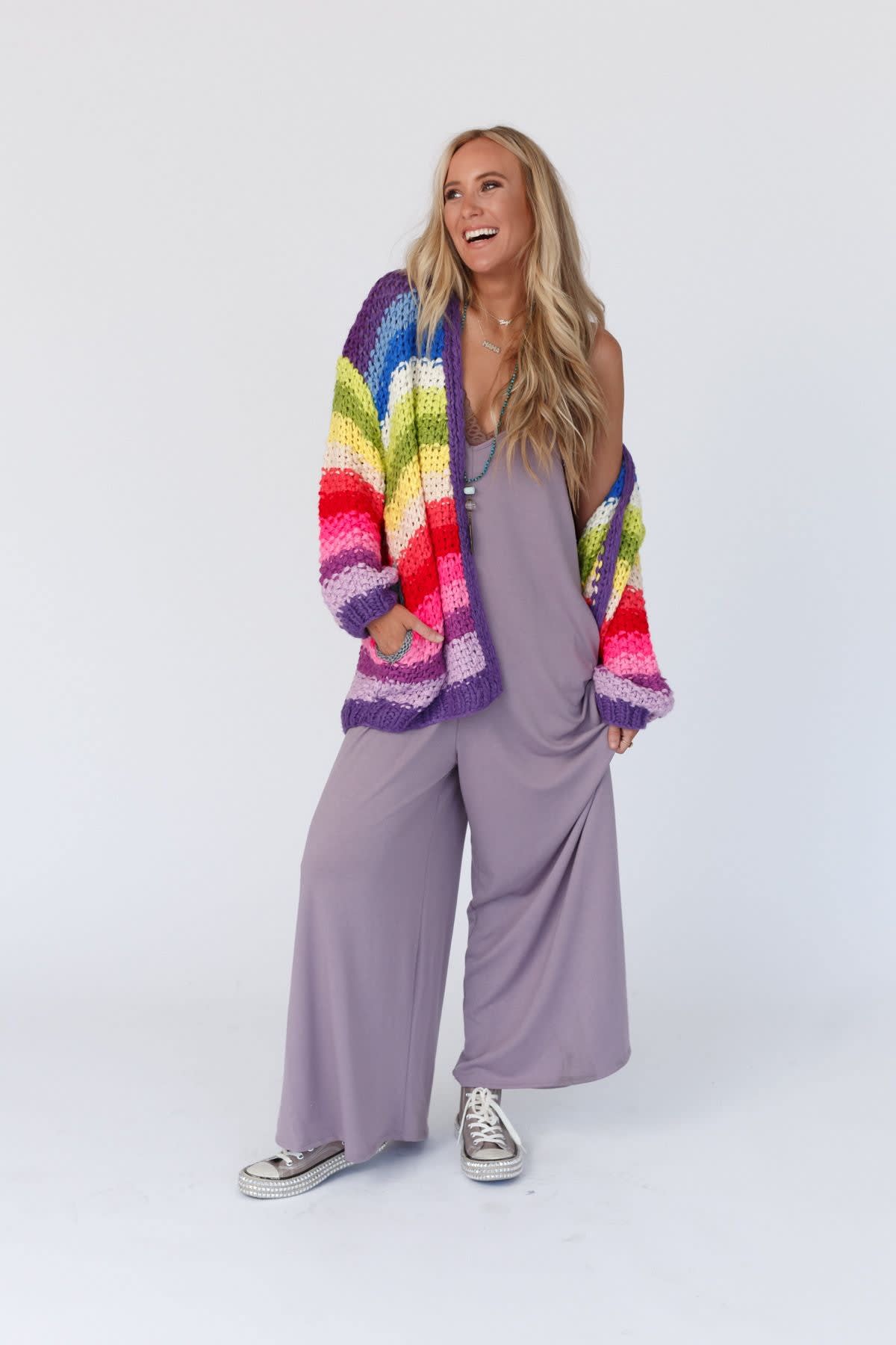 Add a fun and cozy statement to any of your outfits with this bold cardigan!