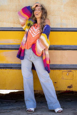 Pair this colorful boho sweater with your favorite tee and jeans for a statement-making look.