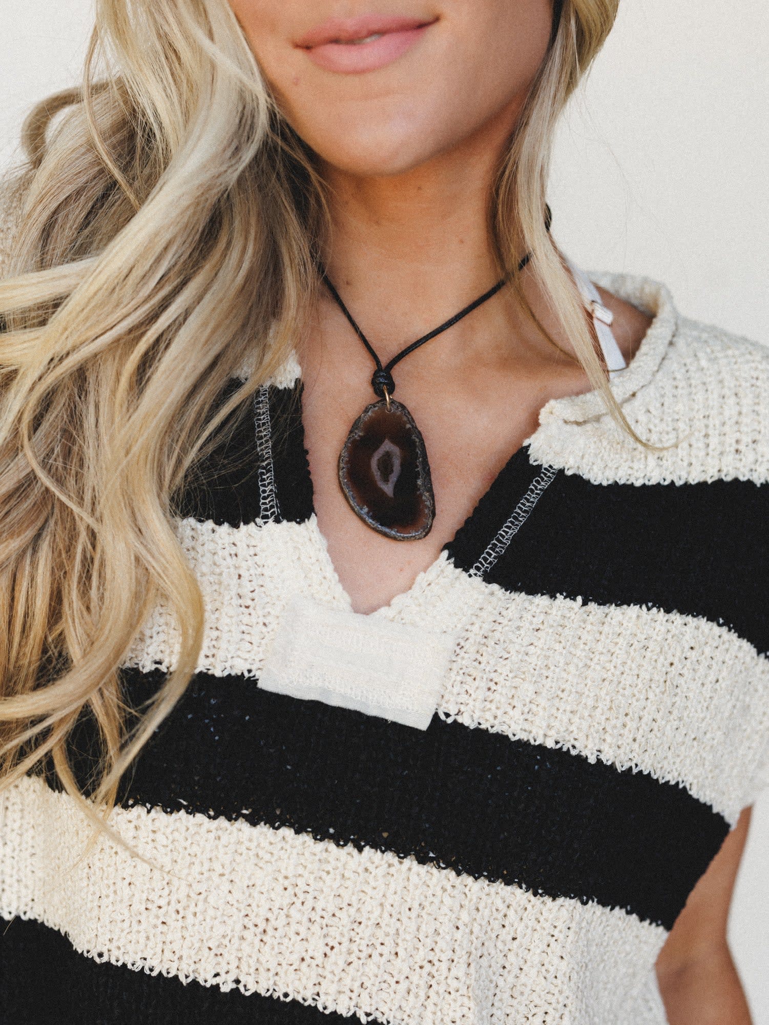 • Natural agate slice necklace on adjustable cord adds the perfect bohemian jewelry accent to complete your free-spirited style.