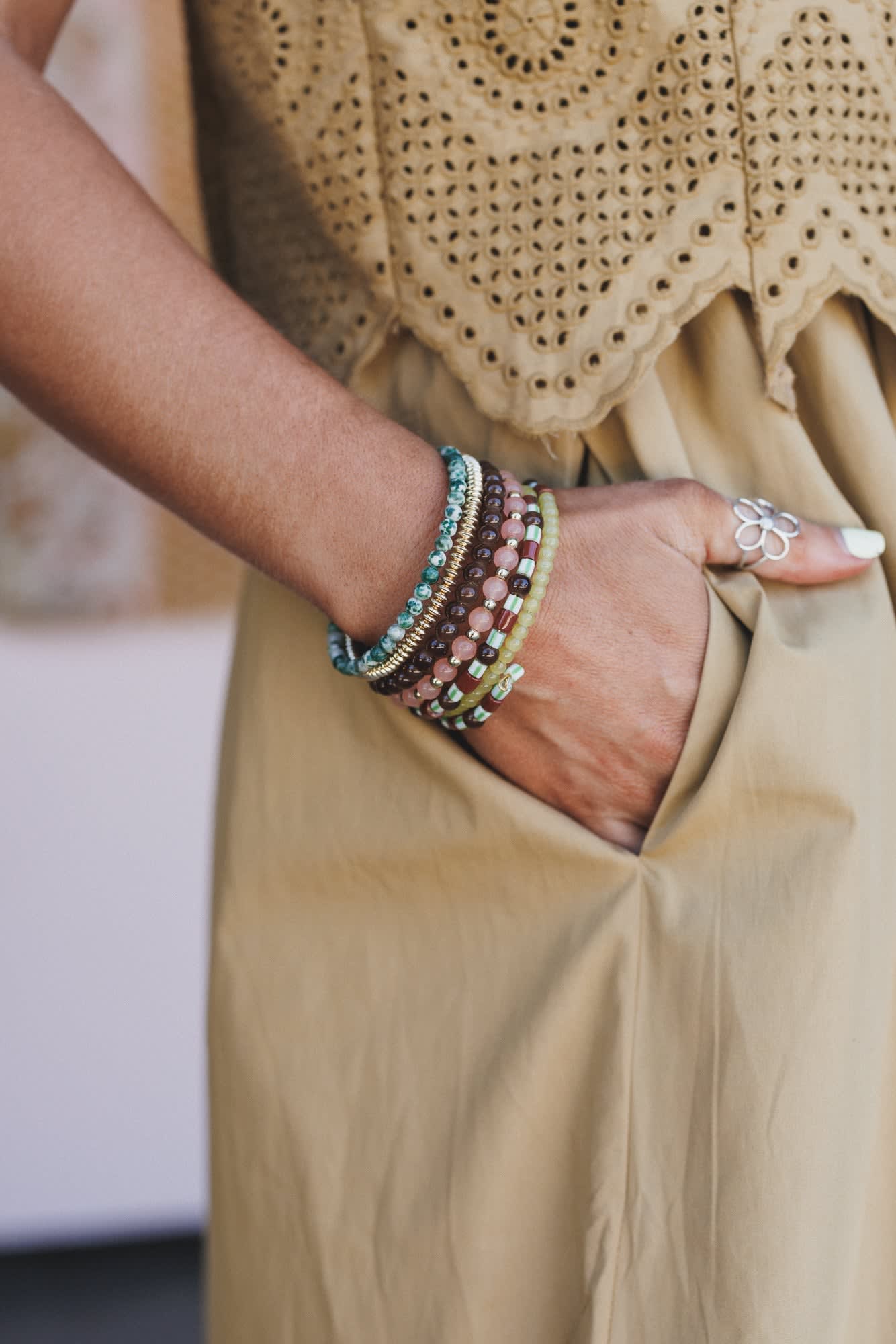 This coiled beaded bracelet is such an easy way to add texture to any look, casual or dressy.Β